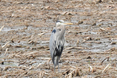 much in the ponds with water, but the almost dry cell had a Great Blue Heron,