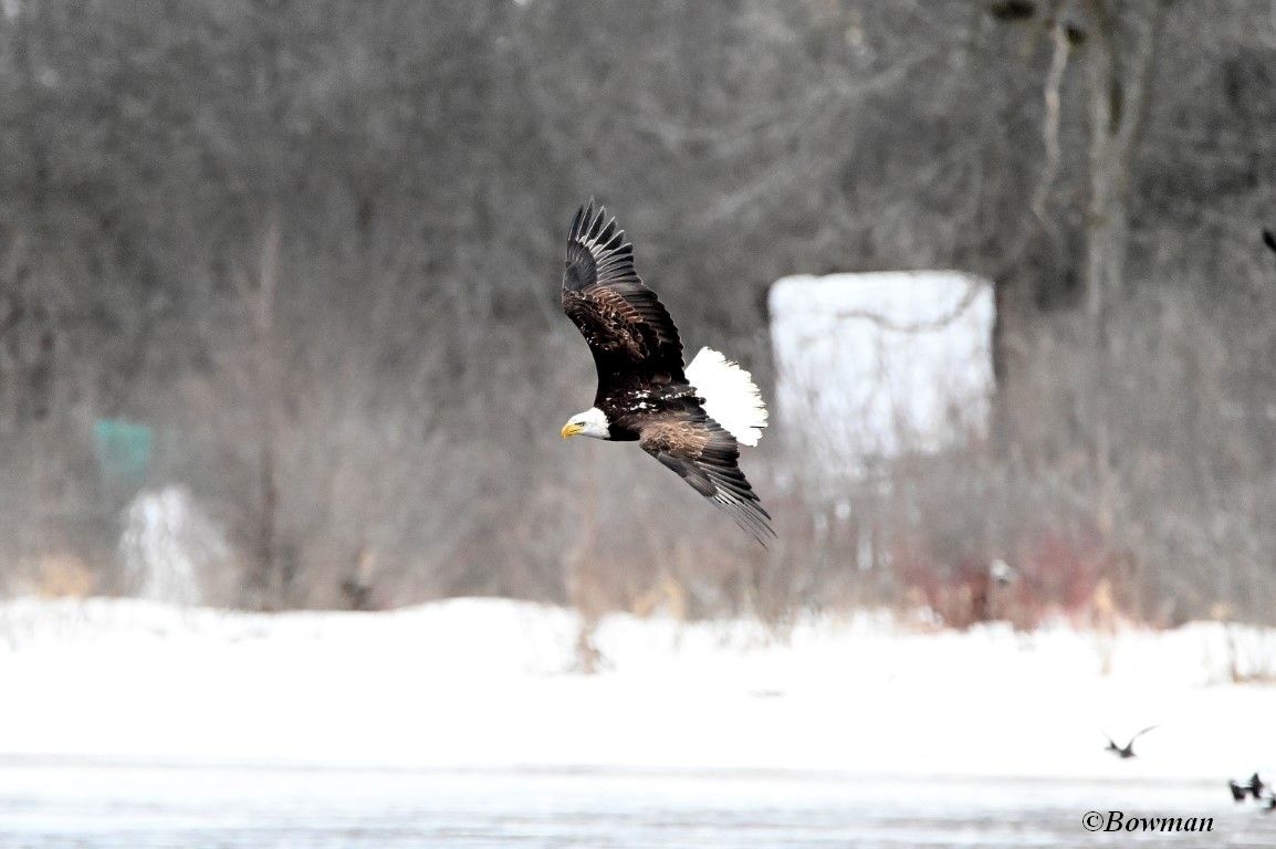 We drove home via Almonte with no further sightings. We even dropped into the CTC to show Eleanor where the ravens were nesting. No bird was on the nest, but one did fly over the arena. We were delighted to see the Trumpeter Swans and the hunting Bald Eagle today. Checklist by Eleanor.