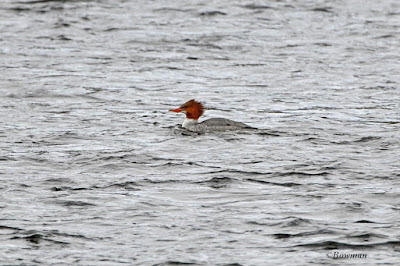 There were a few hundred Mallards hanging around, as Jill feeds them cracked corn. There was also a flock of Common Goldeneye further out in the river. Without warning, they all suddenly took off - a sure sigh that a predator had been seen. Sure enough, seconds later, a Bald Eagle flew over the river. it twice hovered and tried to drop down on a goldeneye, but the duck eluded it. Exciting!